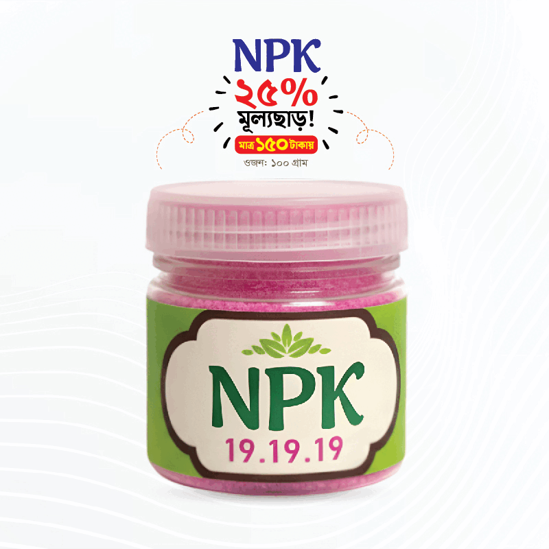 NPK 19-19-19 একটি ব্যালেন্সড জল-দ্রবণীয় সার, যাতে নাইট্রোজেন (N), ফসফরাস (P) এবং পটাশিয়াম (K) সম পরিমাণে রয়েছে। এটি গাছের পূর্ণ বিকাশ, দ্রুত বৃদ্ধির পাশাপাশি ফুল ও ফলনের পরিমাণ বাড়াতে সহায়ক।